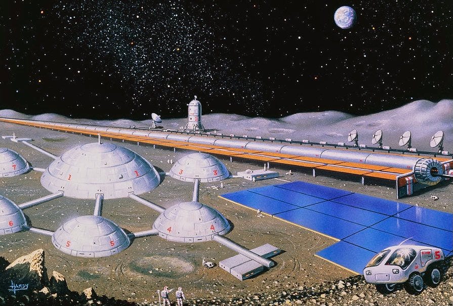 That doesn’t sound much different from the science fiction descriptions of moon bases from when I was a kid, and the rendering doesn’t look that different either from the one David Hardy did decades ago.