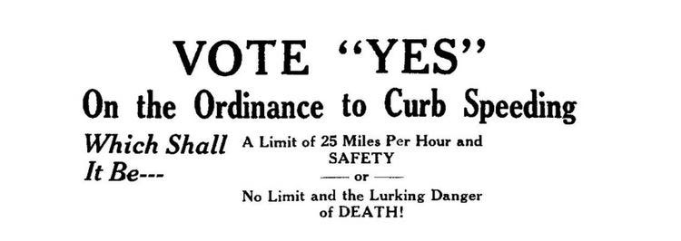 "No longer would there be any thought about limiting speed; indeed, one industry executive explained that “the motor car was invented so that man could go faster” and that “the major inherent quality of the automobile is speed.” Instead, the approach to safety would be to control the pedestrians and get them out of the way, to separate them with jaywalking laws and strict controls. Over time, safety would be redefined to make roads safer for cars, not people."